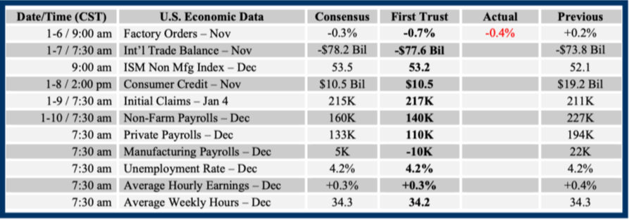 Consensus forecasts come from Bloomberg. This report was prepared by First Trust Advisors L. P., and reflects the current opinion of the authors. It is based upon sources and data believed to be accurate and reliable. Opinions and forward looking statements expressed are subject to change without notice. This information does not constitute a solicitation or an offer to buy or sell any security.
