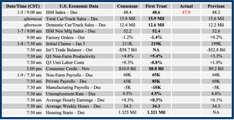 Consensus forecasts come from Bloomberg. This report was prepared by First Trust Advisors L. P., and reflects the current opinion of the authors. It is based upon sources and data believed to be accurate and reliable. Opinions and forward looking statements expressed are subject to change without notice. This information does not constitute a solicitation or an offer to buy or sell any security.