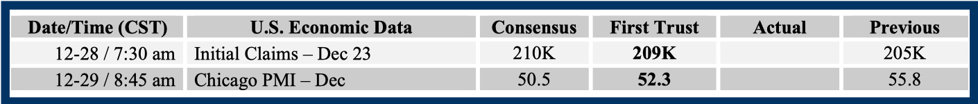 Consensus forecasts come from Bloomberg. This report was prepared by First Trust Advisors L. P., and reflects the current opinion of the authors. It is based upon sources and data believed to be accurate and reliable. Opinions and forward looking statements expressed are subject to change without notice. This information does not constitute a solicitation or an offer to buy or sell any security.