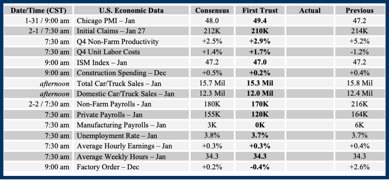 Consensus forecasts come from Bloomberg. This report was prepared by First Trust Advisors L. P., and reflects the current opinion of the authors. It is based upon sources and data believed to be accurate and reliable. Opinions and forward looking statements expressed are subject to change without notice. This information does not constitute a solicitation or an offer to buy or sell any security.