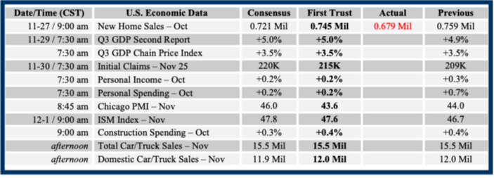 Consensus forecasts come from Bloomberg. This report was prepared by First Trust Advisors L. P., and reflects the current opinion of the authors. It is based upon sources and data believed to be accurate and reliable. Opinions and forward looking statements expressed are subject to change without notice. This information does not constitute a solicitation or an offer to buy or sell any security.