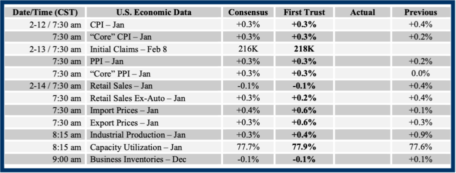 Consensus forecasts come from Bloomberg. This report was prepared by First Trust Advisors L. P., and reflects the current opinion of the authors. It is based upon sources and data believed to be accurate and reliable. Opinions and forward looking statements expressed are subject to change without notice. This information does not constitute a solicitation or an offer to buy or sell any security.