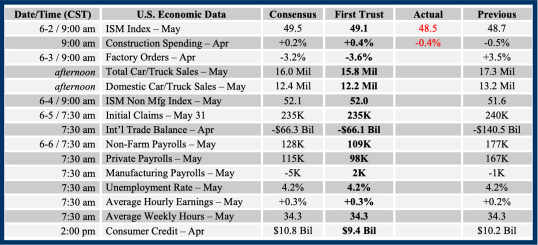 Consensus forecasts come from Bloomberg. This report was prepared by First Trust Advisors L. P., and reflects the current opinion of the authors. It is based upon sources and data believed to be accurate and reliable. Opinions and forward looking statements expressed are subject to change without notice. This information does not constitute a solicitation or an offer to buy or sell any security.