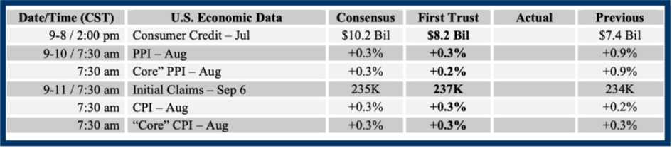 Consensus forecasts come from Bloomberg. This report was prepared by First Trust Advisors L. P., and reflects the current opinion of the authors. It is based upon sources and data believed to be accurate and reliable. Opinions and forward looking statements expressed are subject to change without notice. This information does not constitute a solicitation or an offer to buy or sell any security.