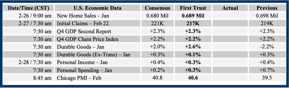 Consensus forecasts come from Bloomberg. This report was prepared by First Trust Advisors L. P., and reflects the current opinion of the authors. It is based upon sources and data believed to be accurate and reliable. Opinions and forward looking statements expressed are subject to change without notice. This information does not constitute a solicitation or an offer to buy or sell any security.
