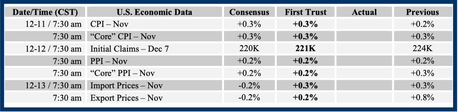 Consensus forecasts come from Bloomberg. This report was prepared by First Trust Advisors L. P., and reflects the current opinion of the authors. It is based upon sources and data believed to be accurate and reliable. Opinions and forward looking statements expressed are subject to change without notice. This information does not constitute a solicitation or an offer to buy or sell any security.