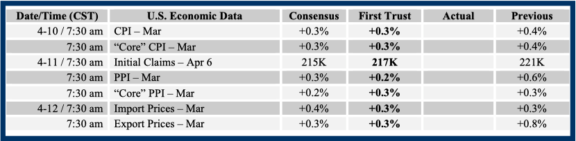 Consensus forecasts come from Bloomberg. This report was prepared by First Trust Advisors L. P., and reflects the current opinion of the authors. It is based upon sources and data believed to be accurate and reliable. Opinions and forward looking statements expressed are subject to change without notice. This information does not constitute a solicitation or an offer to buy or sell any security.