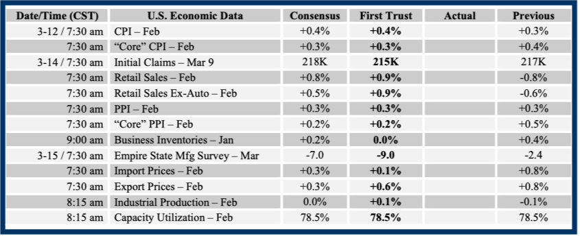 Consensus forecasts come from Bloomberg. This report was prepared by First Trust Advisors L. P., and reflects the current opinion of the authors. It is based upon sources and data believed to be accurate and reliable. Opinions and forward looking statements expressed are subject to change without notice. This information does not constitute a solicitation or an offer to buy or sell any security.
