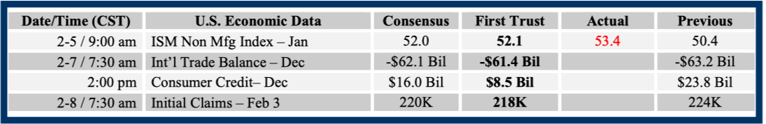 Consensus forecasts come from Bloomberg. This report was prepared by First Trust Advisors L. P., and reflects the current opinion of the authors. It is based upon sources and data believed to be accurate and reliable. Opinions and forward looking statements expressed are subject to change without notice. This information does not constitute a solicitation or an offer to buy or sell any security.