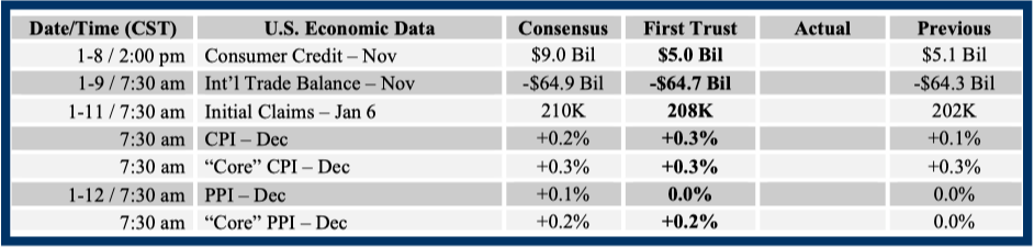 Consensus forecasts come from Bloomberg. This report was prepared by First Trust Advisors L. P., and reflects the current opinion of the authors. It is based upon sources and data believed to be accurate and reliable. Opinions and forward looking statements expressed are subject to change without notice. This information does not constitute a solicitation or an offer to buy or sell any security.