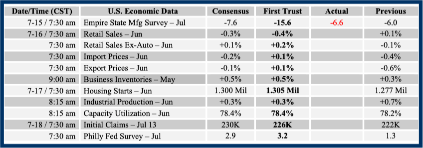 Consensus forecasts come from Bloomberg. This report was prepared by First Trust Advisors L. P., and reflects the current opinion of the authors. It is based upon sources and data believed to be accurate and reliable. Opinions and forward looking statements expressed are subject to change without notice. This information does not constitute a solicitation or an offer to buy or sell any security.