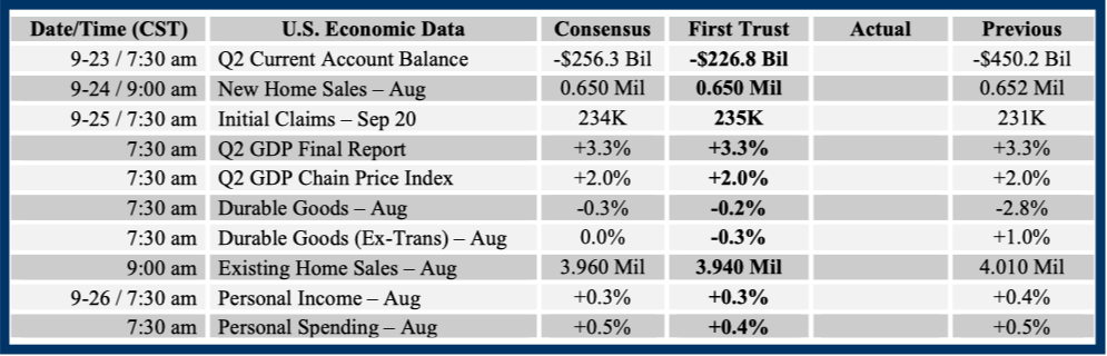 Consensus forecasts come from Bloomberg. This report was prepared by First Trust Advisors L. P., and reflects the current opinion of the authors. It is based upon sources and data believed to be accurate and reliable. Opinions and forward looking statements expressed are subject to change without notice. This information does not constitute a solicitation or an offer to buy or sell any security.