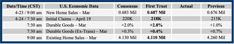 Consensus forecasts come from Bloomberg. This report was prepared by First Trust Advisors L. P., and reflects the current opinion of the authors. It is based upon sources and data believed to be accurate and reliable. Opinions and forward looking statements expressed are subject to change without notice. This information does not constitute a solicitation or an offer to buy or sell any security.
