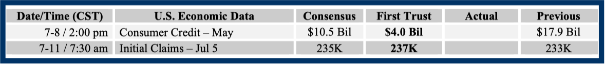 Consensus forecasts come from Bloomberg. This report was prepared by First Trust Advisors L. P., and reflects the current opinion of the authors. It is based upon sources and data believed to be accurate and reliable. Opinions and forward looking statements expressed are subject to change without notice. This information does not constitute a solicitation or an offer to buy or sell any security.