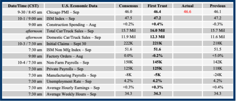 Consensus forecasts come from Bloomberg. This report was prepared by First Trust Advisors L. P., and reflects the current opinion of the authors. It is based upon sources and data believed to be accurate and reliable. Opinions and forward looking statements expressed are subject to change without notice. This information does not constitute a solicitation or an offer to buy or sell any security.