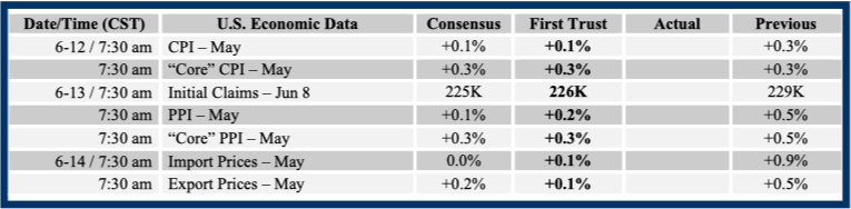 Consensus forecasts come from Bloomberg. This report was prepared by First Trust Advisors L. P., and reflects the current opinion of the authors. It is based upon sources and data believed to be accurate and reliable. Opinions and forward looking statements expressed are subject to change without notice. This information does not constitute a solicitation or an offer to buy or sell any security.