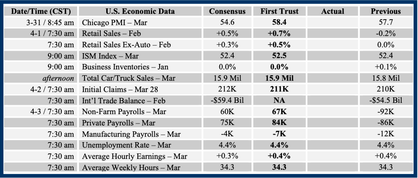 Consensus forecasts come from Bloomberg. This report was prepared by First Trust Advisors L. P., and reflects the current opinion of the authors. It is based upon sources and data believed to be accurate and reliable. Opinions and forward looking statements expressed are subject to change without notice. This information does not constitute a solicitation or an offer to buy or sell any security.