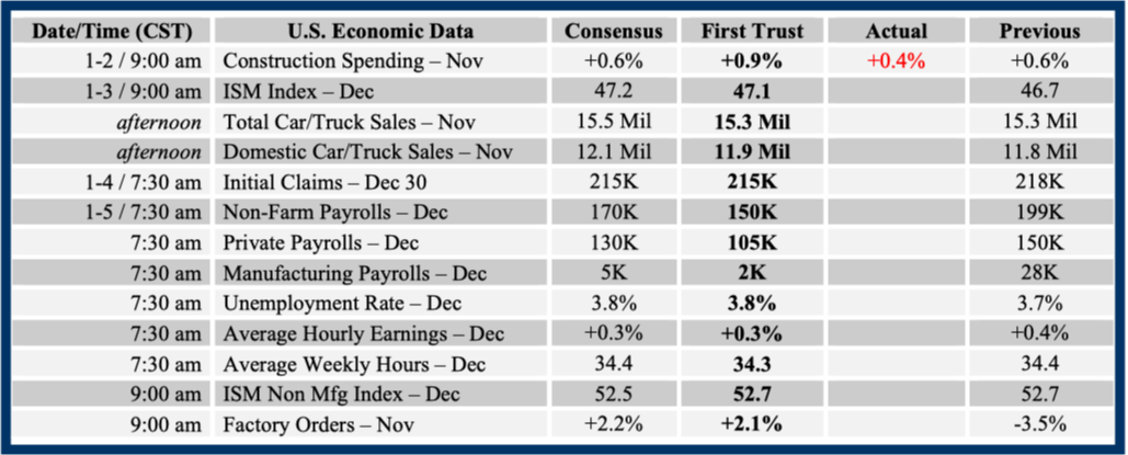 Consensus forecasts come from Bloomberg. This report was prepared by First Trust Advisors L. P., and reflects the current opinion of the authors. It is based upon sources and data believed to be accurate and reliable. Opinions and forward looking statements expressed are subject to change without notice. This information does not constitute a solicitation or an offer to buy or sell any security.