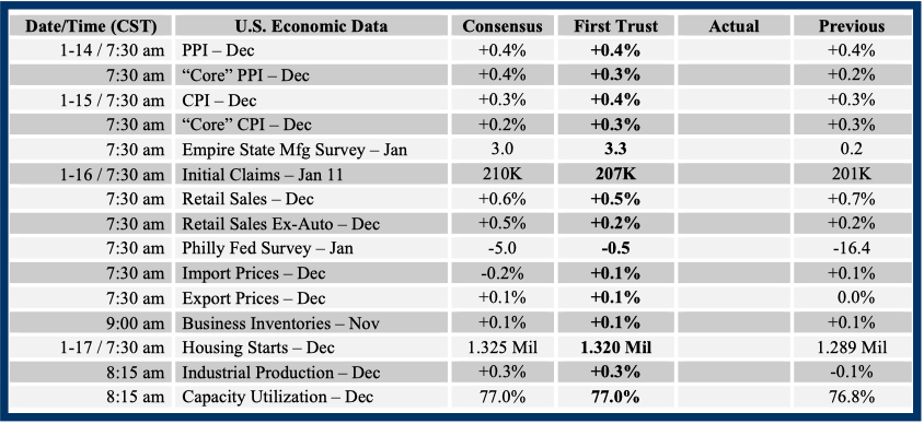 Consensus forecasts come from Bloomberg. This report was prepared by First Trust Advisors L. P., and reflects the current opinion of the authors. It is based upon sources and data believed to be accurate and reliable. Opinions and forward looking statements expressed are subject to change without notice. This information does not constitute a solicitation or an offer to buy or sell any security.