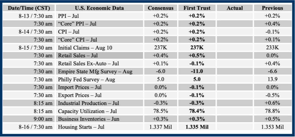 Pretty much every month there’s one week that has the most important economic reports. For the month of August that’s this week. The reports this week include consumer price inflation, producer prices, retail sales, industrial production, housing starts, and unemployment claims.