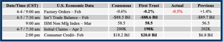 Consensus forecasts come from Bloomberg. This report was prepared by First Trust Advisors L. P., and reflects the current opinion of the authors. It is based upon sources and data believed to be accurate and reliable. Opinions and forward looking statements expressed are subject to change without notice. This information does not constitute a solicitation or an offer to buy or sell any security.